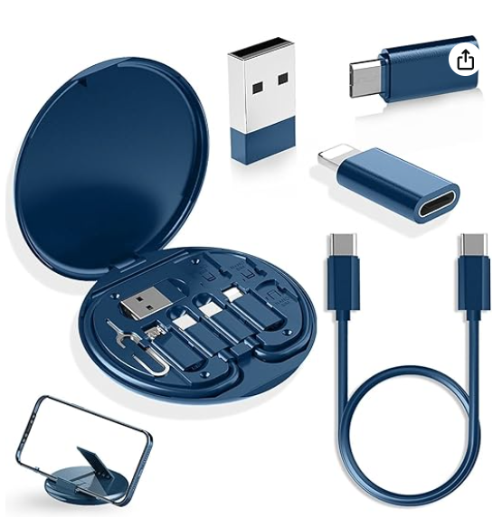 The BLAXSTOC Multifunctional Data Cable Conversion Head is a compact and versatile accessory designed to simplify your charging and data transfer needs. This all-in-one tool combines multiple charging adapters, a SIM card slot tray eject pin, and a phone holder, all housed in a portable storage box. Its multi-type charging line convertor supports various devices, making it an essential gadget for travelers and tech enthusiasts.