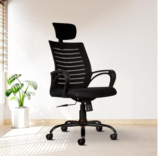 - Ergonomic Design: High-back mesh supports spine and improves posture