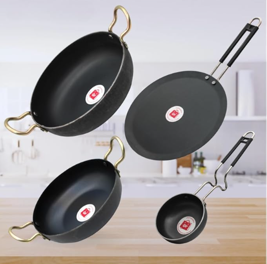 - Set Includes: Kadhai, Tawa, Tadka Pan (4-piece combo)