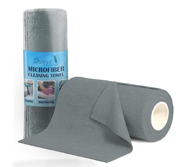 Story@Home Microfiber Cleaning Cloths | 360 GSM, Lint & Streak Free, Multi-Purpose Wash Cloths for Kitchen, Car, Glass & Stainless Steel – Set of 20 (25×25 cm, Grey, 1 Roll)