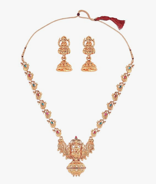 Zaveri Pearls Gold-Tone Goddess Temple Peacock Necklace & Earring Set (ZPFK7691)